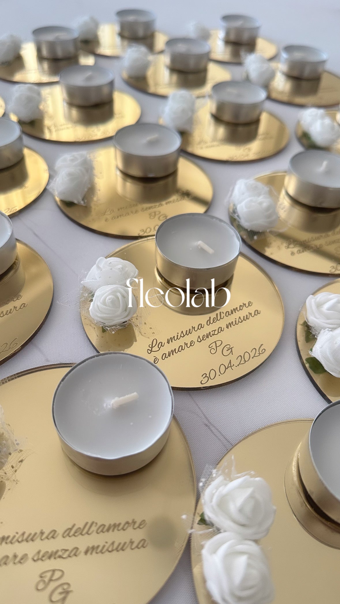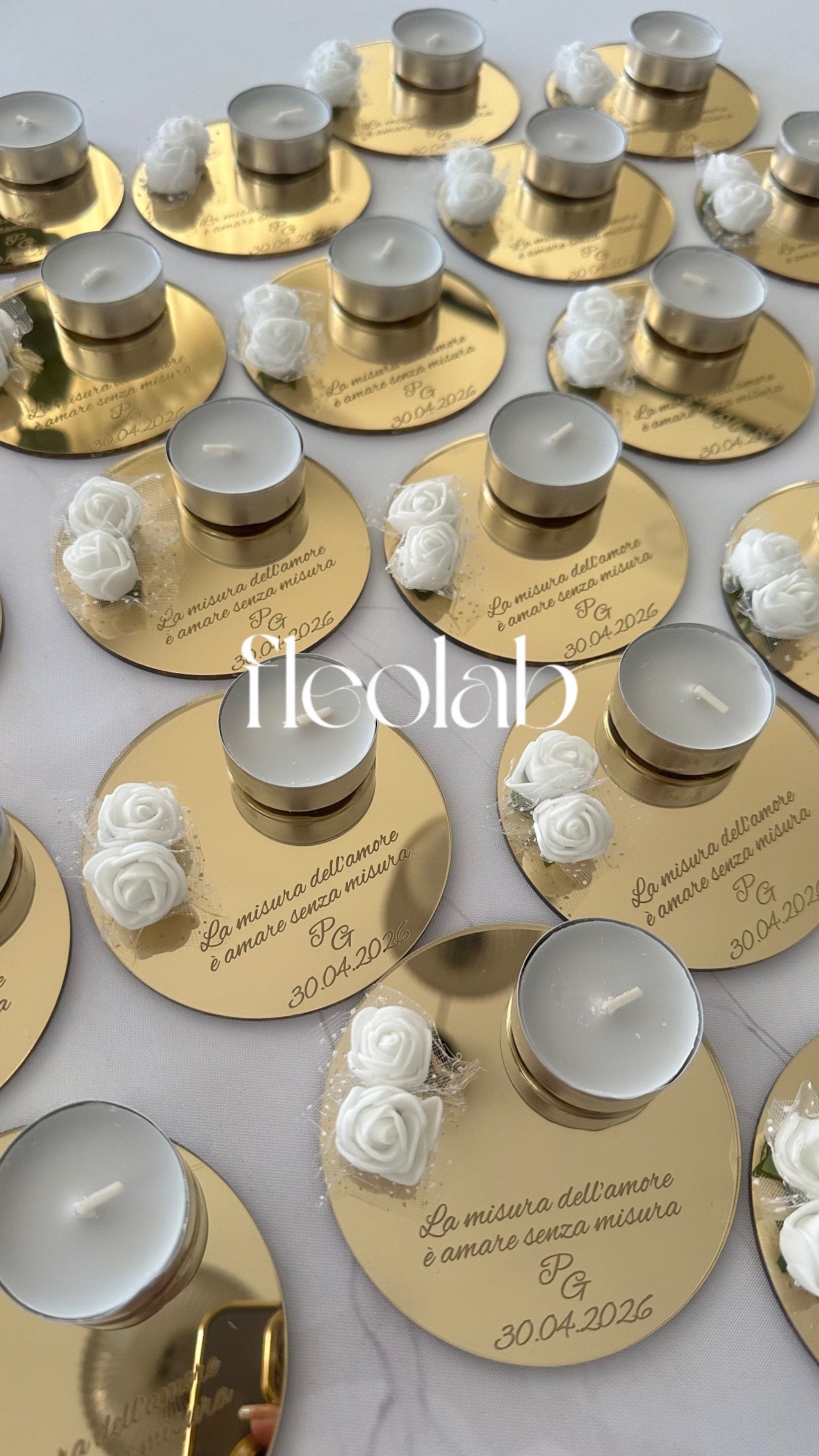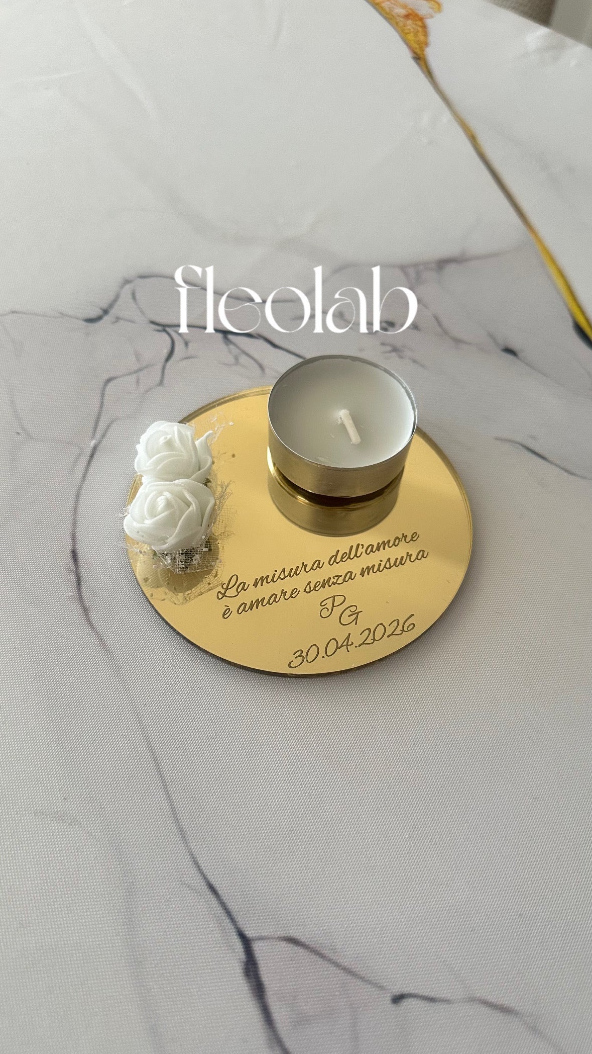 Porta tealight in plexiglass specchiato con frase personalizzabile