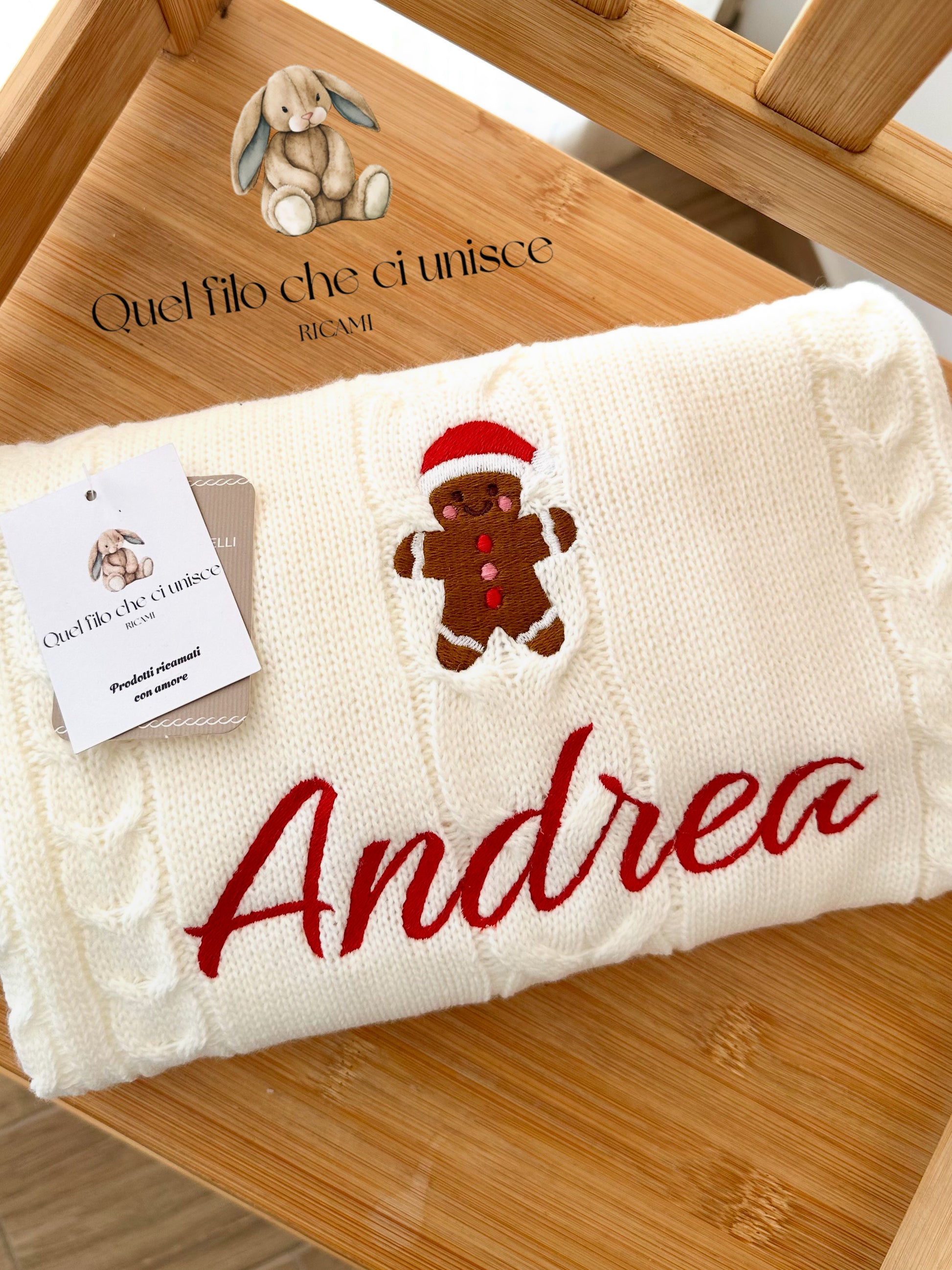 Personalizzala inserendo il nome e il colore del ricamo nella sezione “istruzioni speciali per l’ordine” nel tuo carrello al momento del check out